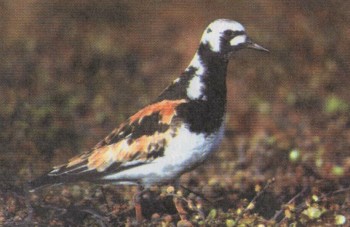 В брачном наряде зеленовато-черная спина с ржавыми пятнами, зоб и грудь серые, брюшко белое; на голове яркие черно-белые пятна; зимой самец и самка в основном темно-бурые; ноги оранжевые круглый год |