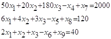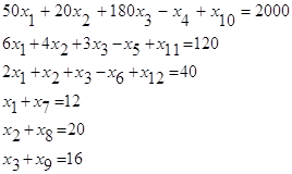 продукта питания и минимально необходимые нормы их потребления заданы следующей