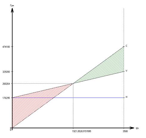 витрат і реалізаційних надходжень, тобто при обсязі випуску штук підприємство