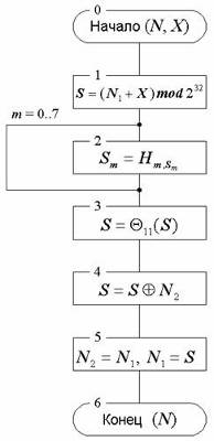 криптопреобразования, где N – преобразуемый 64-битовый блок данных, в ходе