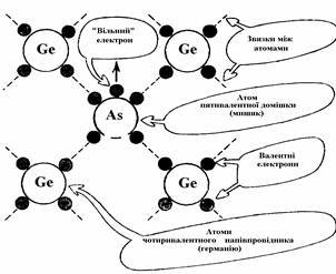 чином, коли в чистий кристал кремнію чи германію ввести домішку, атом якої має