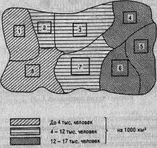 районы по плотности населения можно разбить на три группы: 1) районы, имеющие плотность