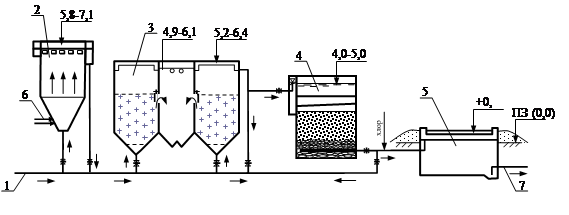 реагентного хозяйства построена высотная схема очистных сооружений, затем