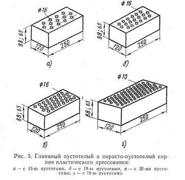 Глиняный пустотелый и пористо-пустотелый кирпич применяют для